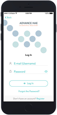 Download the ADVANCE HAE mobile app. The ADVANCE HAE app allows you to enter and monitor your reports from anywhere, at any time, with your digital diary available in the palm of your hand. Every report you complete helps move HAE research forward.