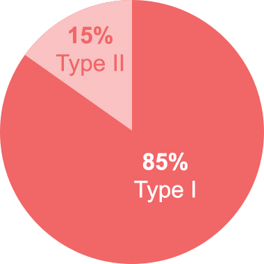 HAE is considered a very rare disease, and occurs in about 1 in 10,000 to 1 in 50,000 people. Type I is the most common, accounting for approximately 85 percent of cases. Type II occurs in approximately 15 percent of cases. There is no data regarding the incidence of HAE with Normal C1-Inhibitor, however, expert scientists believe that the population represents a small subset of people who suffer with HAE.
